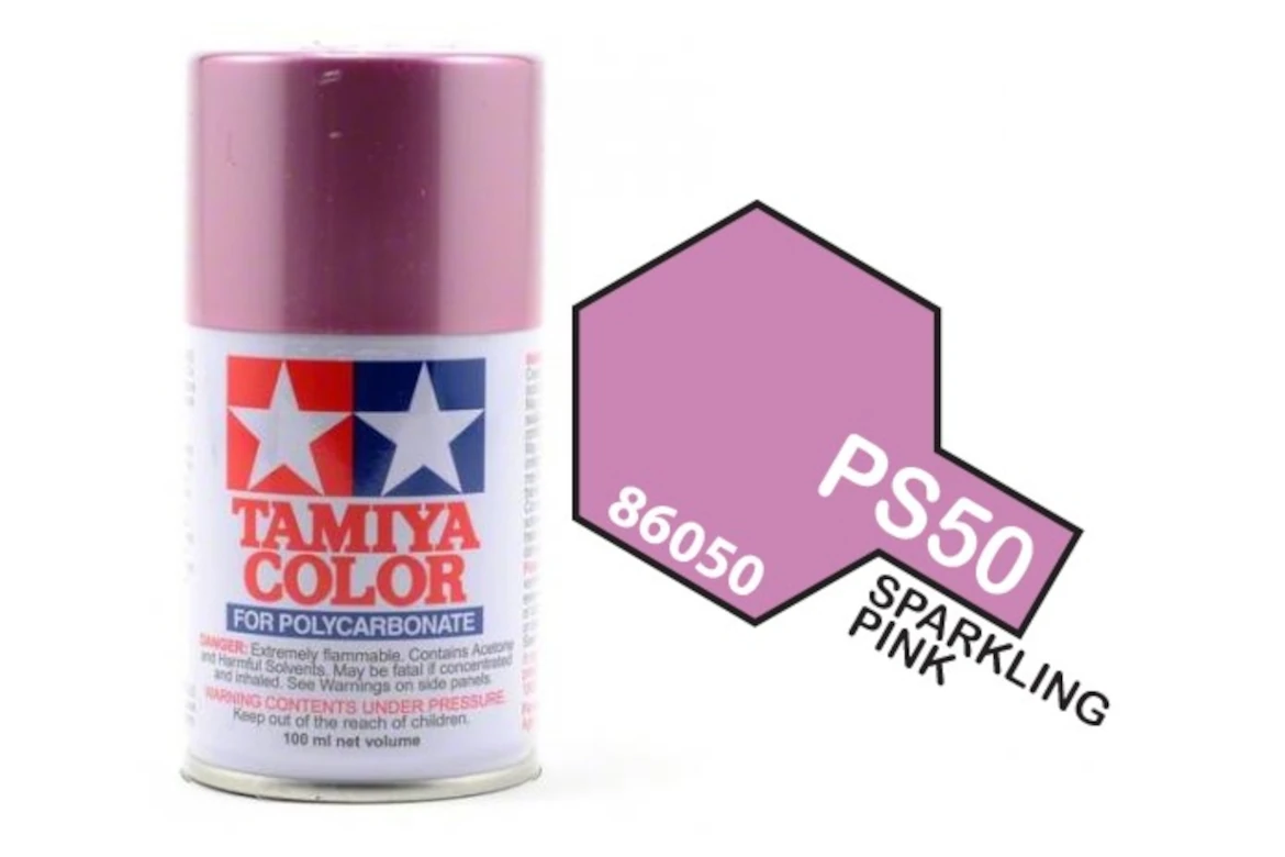 Tamiya PS-50 Sparkling Pink Sprey Boya, drift severler için gösterişli bir ışıltılı pembe renkli sprey boyadır. En son kat siyah veya koyu gri renk önerilir.